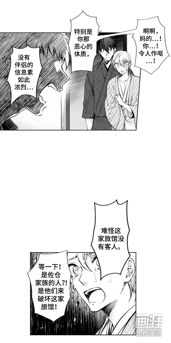 觉得自己人生被诅咒的佐武千仁被一群小混混追打无路可走的他意外的跑到一个温泉旅馆精疲力尽的他刚好被青山卯三救下,醒来的佐武千仁讲述了自己的不幸故事,得知佐武千仁竟然不会受到阿尔法信息素影响,特别中意这一点的青山卯三恳求佐武千仁留下来工作。